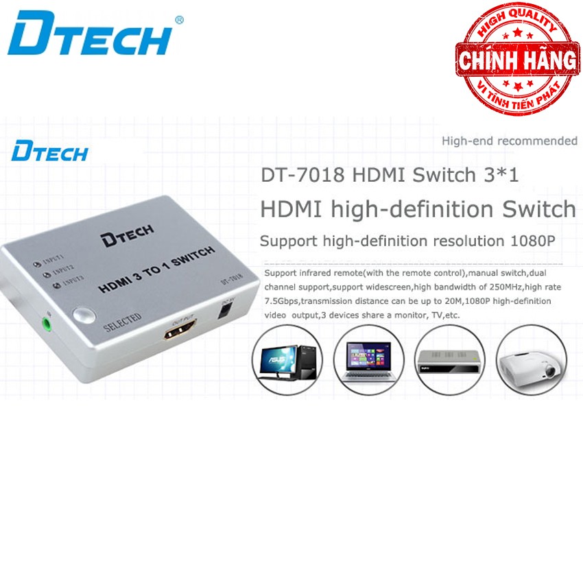 Switch bộ chia HDMI 3 vào 1 ra (3 máy tính ra 1 màn hình) Dtech DT-7018
