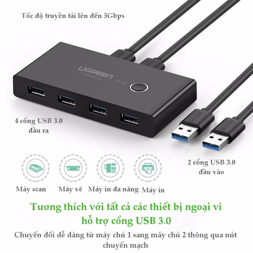 Bộ switch chia cổng USB 3.0 và USB 2.0 2 vào 4 ra UGREEN US216