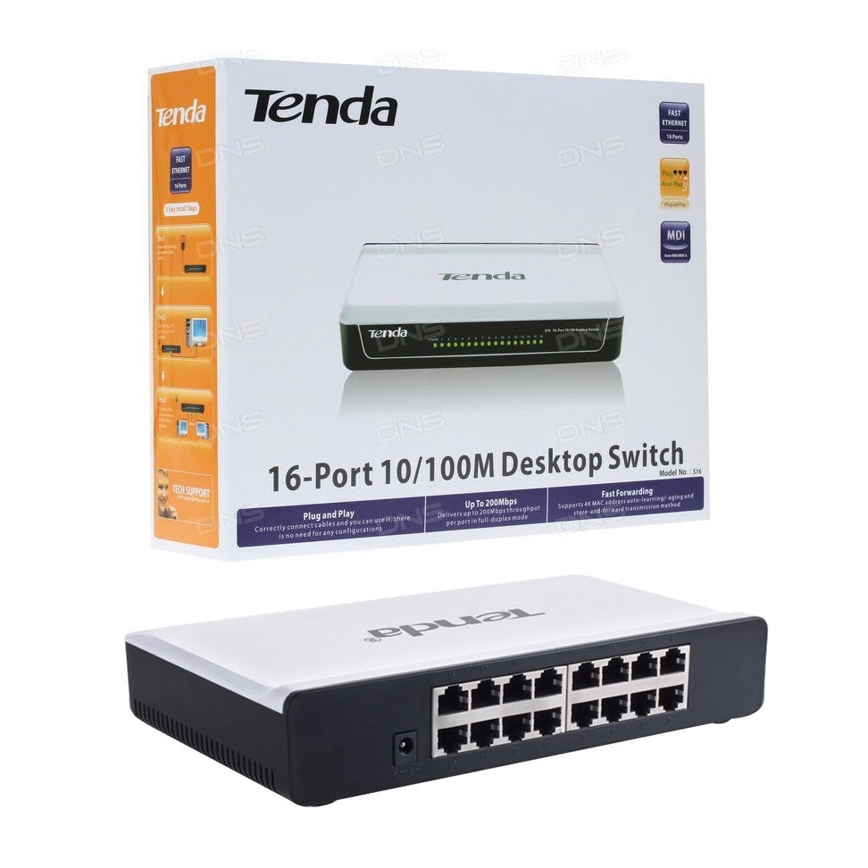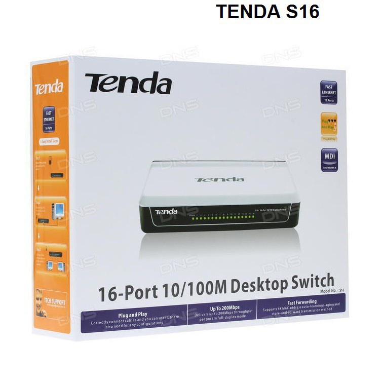 - Tenda S16 là Switch 16 cổng tốc độ 100Mbps, giúp bạn mở rộng hệ thống mạng LAN cho tòa nhà, ký túc xá, văn phòng