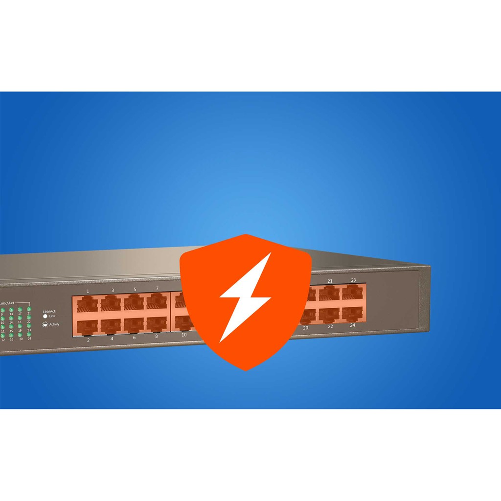 Mạch chống sét tích hợp chuyên nghiệp cho phép tất cả 24 cổng cung cấp khả năng bảo vệ chống sét cấp IV (6 kV ở chế độ thông thường), giảm hiệu quả tỷ lệ thiệt hại cho các cổng do sét đánh.