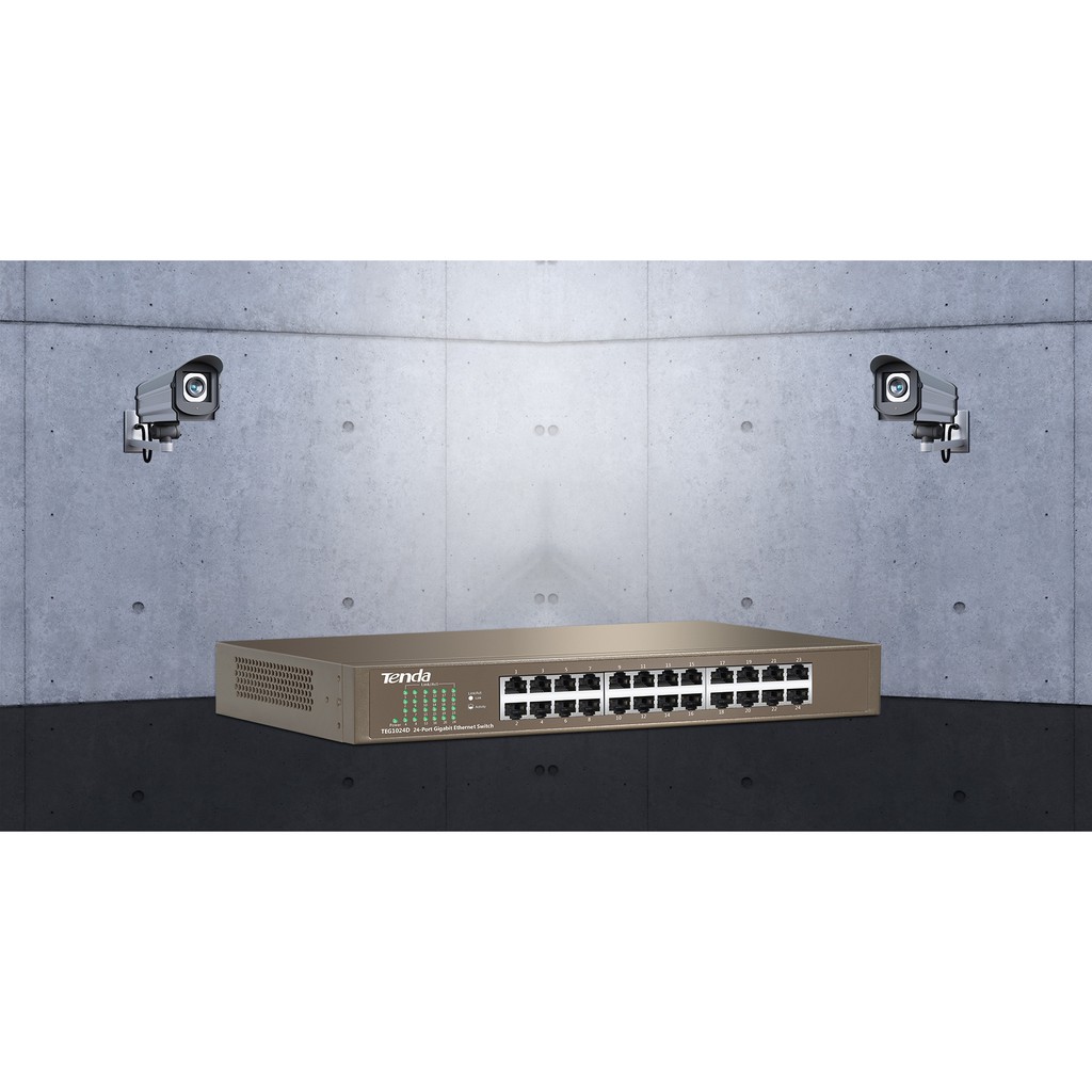 Các cổng RJ45 tự động thương lượng 24 * 10/100/1000 Mbps của Tenda TEG1024D, tốc độ truyền song công lên đến 2000 Mbps, chuyển tiếp tốc độ đường truyền bởi tất cả các cổng và dung lượng bộ nhớ đệm lớn đảm bảo truyền tải kịp thời các tệp lớn và video phát trực tuyến ổn định . Luôn kết nối trong 24/7.