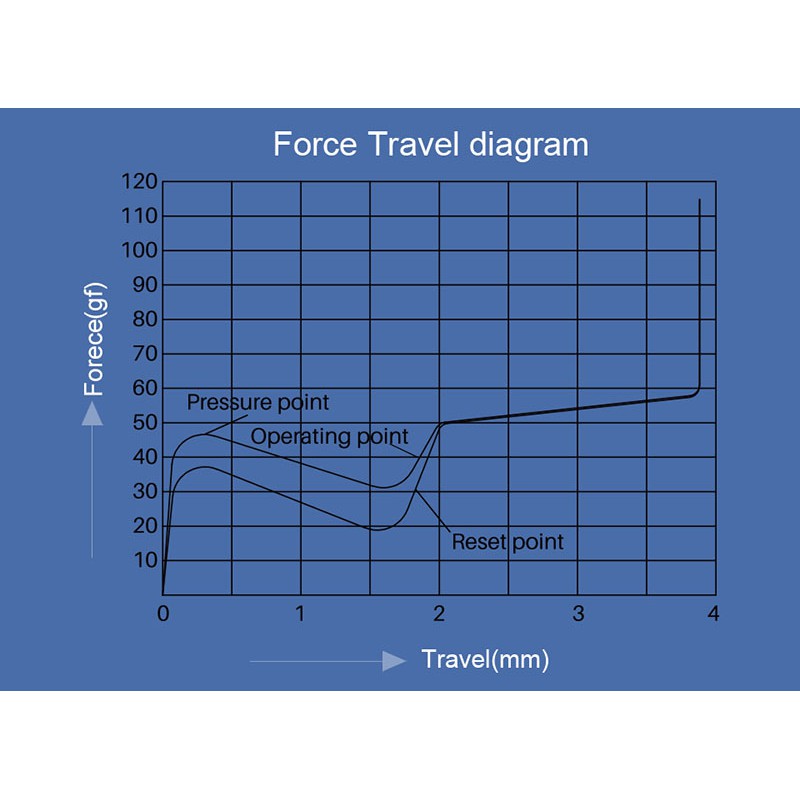 Ocean Blue là một loại switch tactile với khấc cản ở vị trí cao. Người dùng sẽ bắt đầu cảm thấy khấc cản ở mức 0.5mm với phản hồi liên tục khi xuống tới 1.8mm. Chính vì thế, Ocean Blue khác biệt với các switch brown/blue (các switch có khấc cản ở tầm trung).