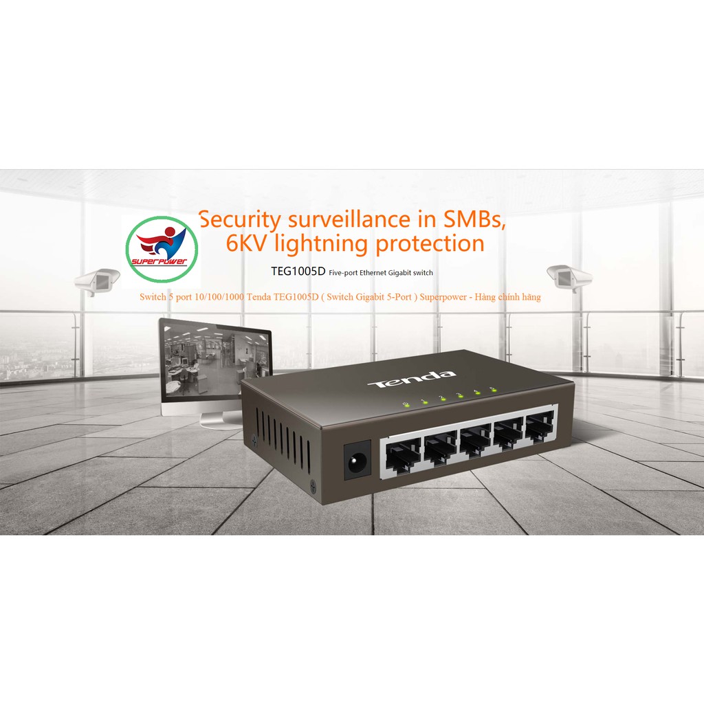 Máy tính & Laptop > Thiết Bị Mạng > Bộ chia mạng || Switch chống sét 5 port 10/100/1000 Tenda TEG1005D ( Switch Gigabit 5-Port ) Superpower - Hàng chính hãngCòn hàng