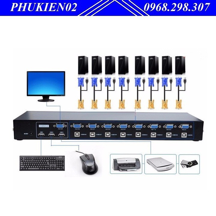 - Đầu vào 8 cổng VGA và 8 cổng USB