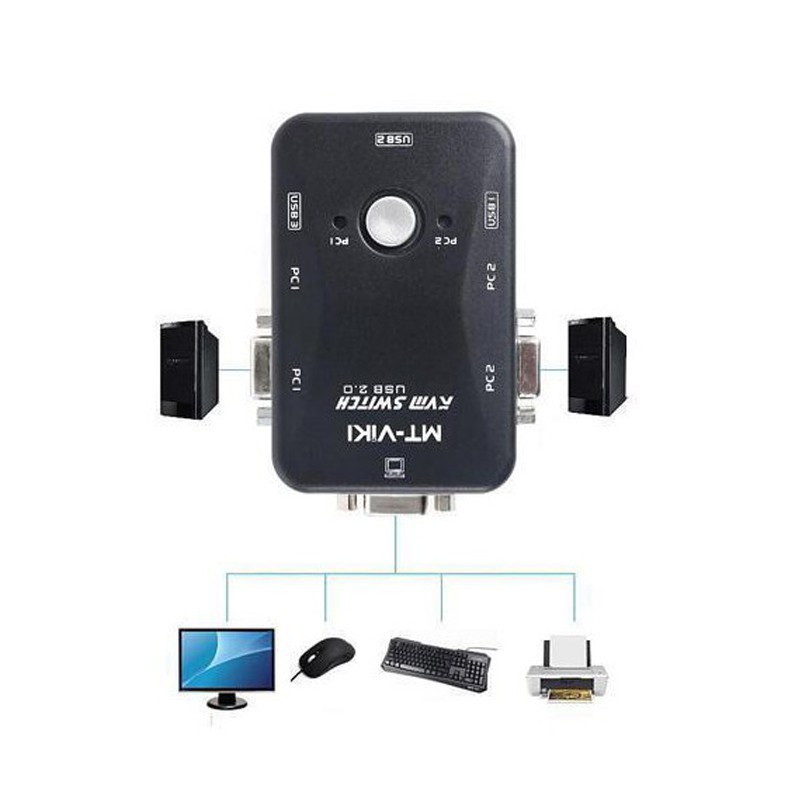 Máy tính & Laptop > Thiết Bị Mạng > Bộ Chuyển Mạch KMV || Bộ Switch KVM MT-ViKI MT-201UK 2 máy tính dùng chung 1 màn hình VGA và phím chuột - HapuStoreCòn hàng