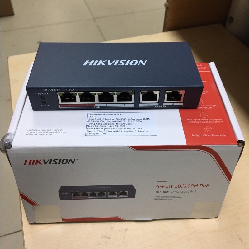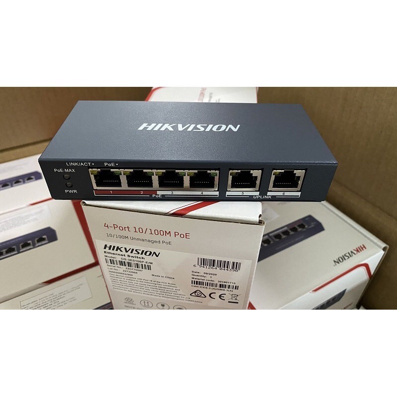 ✅ Switch mạng 4 cổng PoE Hikvision DS-3E0106P-E/M , 2 cổng uplink 10/100Mbps