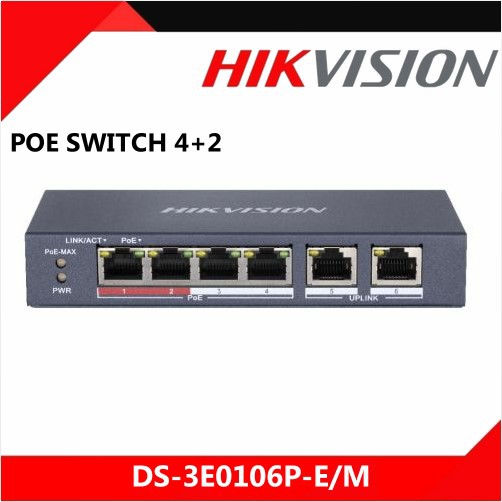 Switch mạng DS-3E0106P-E/M 4 cổng PoE , 2 cổng uplink 10/100Mbps - Hàng chính hãng
