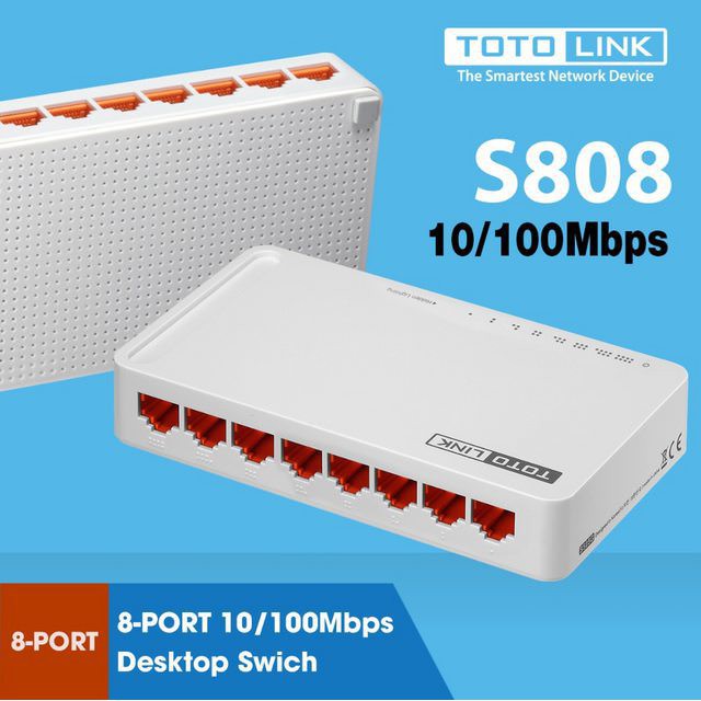 Giới thiệu sản phẩm Cổng Chia Mạng Switch 8 Port Totolink 10/100Mbps S808 Chính Hãng Thương hiệu hàn quốc Totolink S808 là Switch 8 cổng tốc độ tự nhận cáp thẳng/chéo. Có thể truyền và lọc tín hiệu với tốc độ tối đa. Hỗ trợ tính năng cắm và sử dụng ngay. Và còn dễ dàng kết nối với sever, hub hoặc switch khác bằng cáp thẳng/chéoTotolink S808 dễ dàng sử dụng với mọi người. Chỉ cần cắm và sử dụng, S808 giúp mở rộng kết nối cho nhiều thiết bị trong nhà. Bạn có thể dễ dàng kết nối thêm 7 thiết bị mà không cần cấu hình. Có đèn LED báo hiệu hoạt động và kết nối. Kết nối dễ dàng với server, chỉ cần cắm và sử dụng, giúp dễ dàng mở rộng kết nối cho nhiều thiết bị trong nhà.