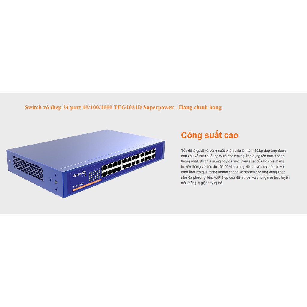 Giới thiệu [Mã 254ELSALE giảm 7% đơn 300K] Switch vỏ thép 24 port 10/100/1000 TEG1024D Superpower - Hàng chính hãng