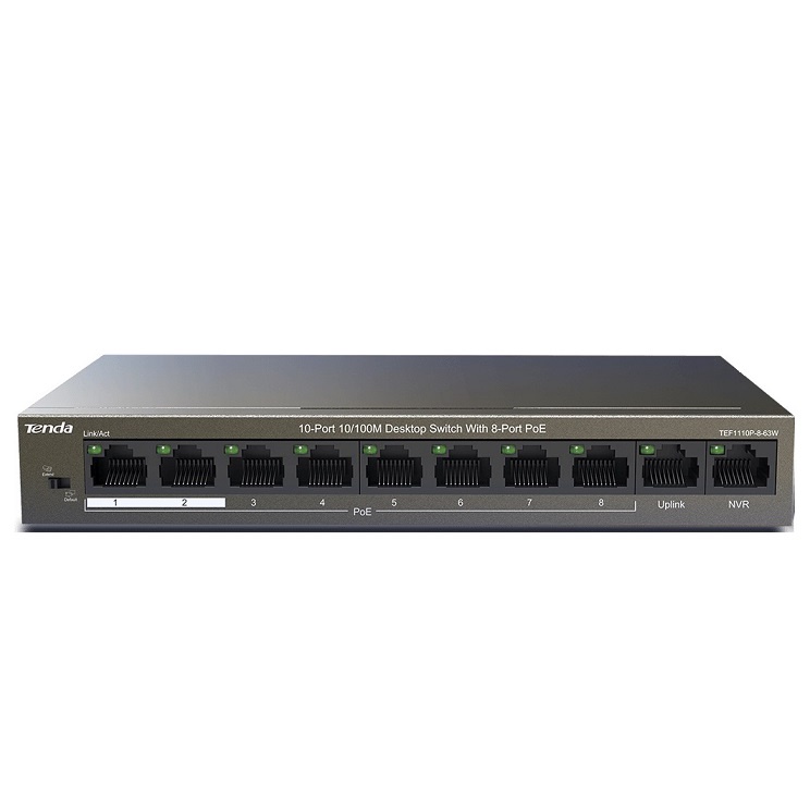 Trang Chủ >> Thiết bị mạng >> Thiết bị mạng TENDA >> 2-port 10/100Mbps + 8-port PoE Switch TENDA TEF1110P (63W)