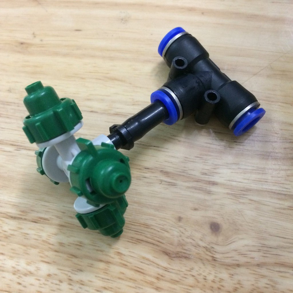 Về nhà khách chỉ việc gắn đầu béc vào là sử dụng đươc, gắn dây 8 mm , dùng trong tưới rau làm mát tưới lan