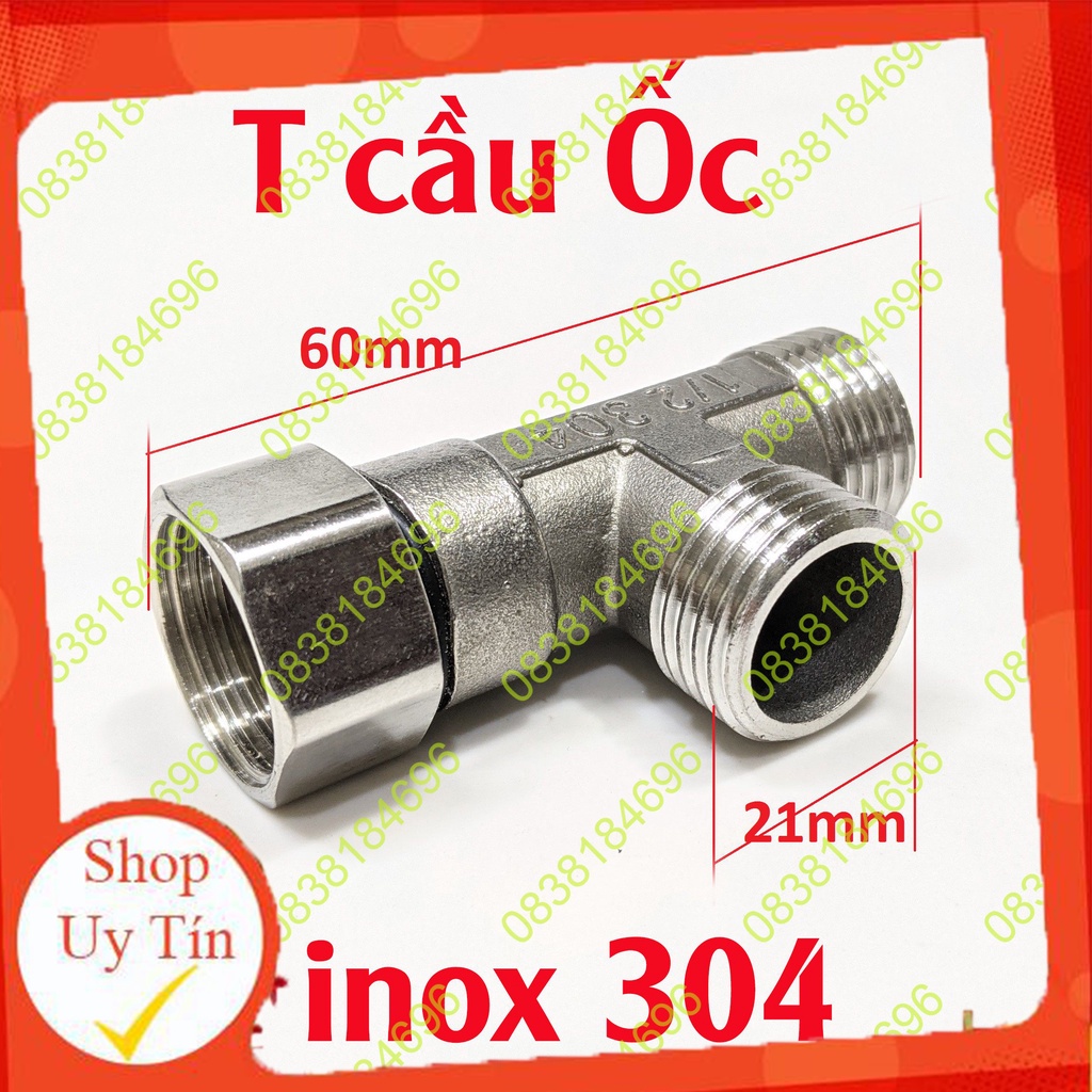 T cầu ren trong inox 304 đúc1 đầu ren trong, 2 đầu ren ngoài 21mm