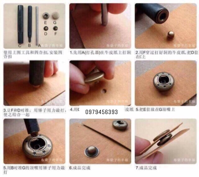 Bộ đột cúc 4 chi tiết dùng để đóng cúc 4 chi tiếtỨng dụng của cúc (nút) 4 chi tiết trong lĩnh vực may mặc là rất lớn: cúc bấm áo khoác, túi, ví.........
