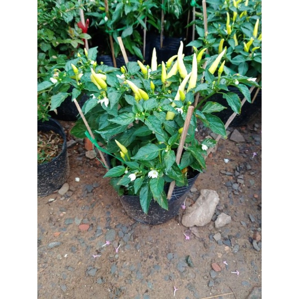 Cây ớt đã sẵn hoa trái, mọi người chỉ cần về trồng xuống chậu lớn để cây mau phát triển, giữ nước.Cây ớt ưa nắng hoàn toàn, nên trồng nơi nhiều nắng