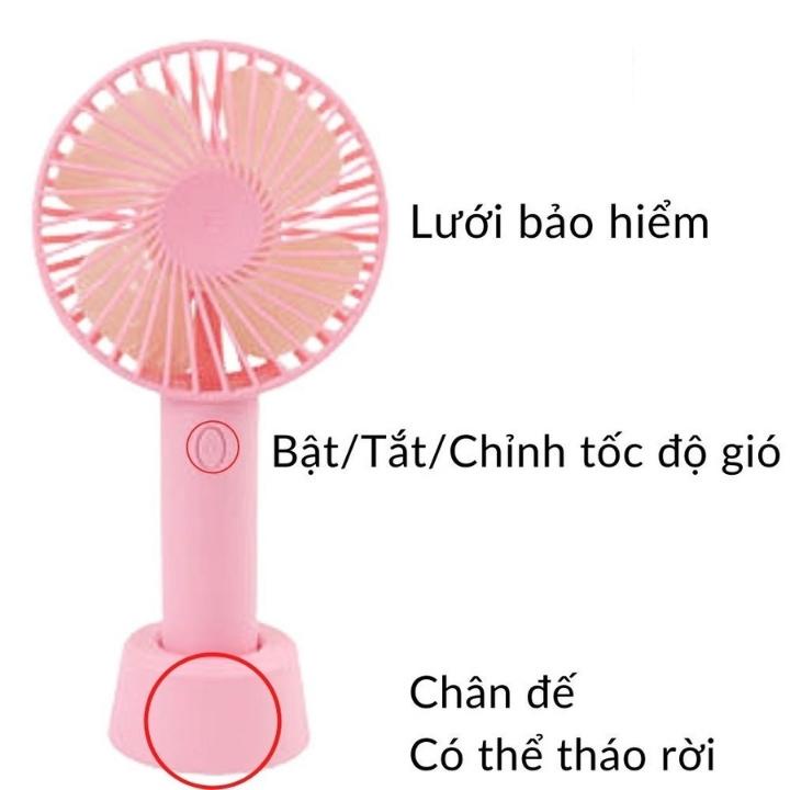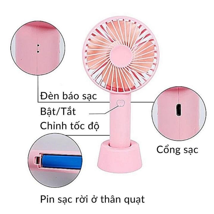 Giới thiệu Quạt mini cầm tay có đế để bàn tích điện 3 tốc độ gió gọn gàng tiện lợi