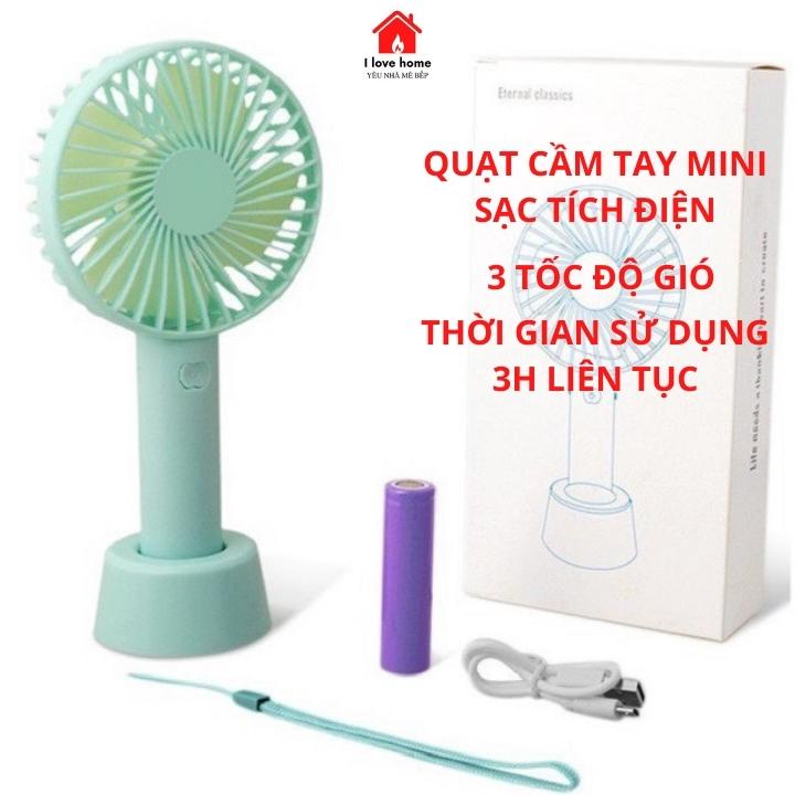 Thiết Bị Điện Gia Dụng > Khác || Quạt mini cầm tay có đế để bàn tích điện 3 tốc độ gió gọn gàng tiện lợiCòn hàng