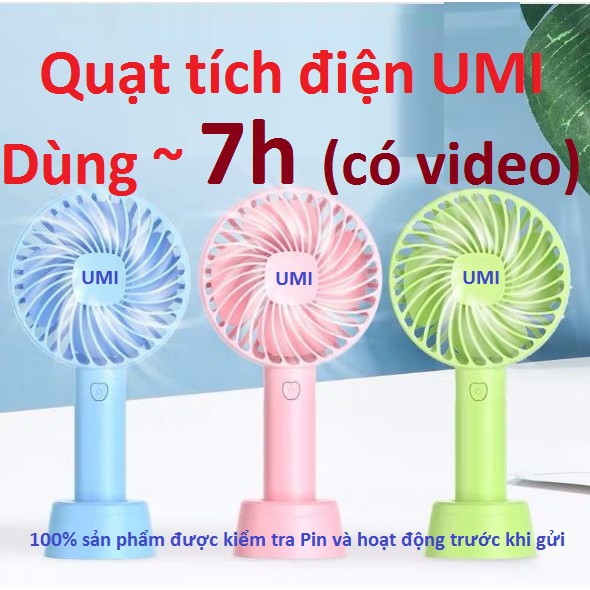 Quạt mini tích điện cầm tay có đế để bàn - Pin trâu 7 tiếng sử dụng (Có test)