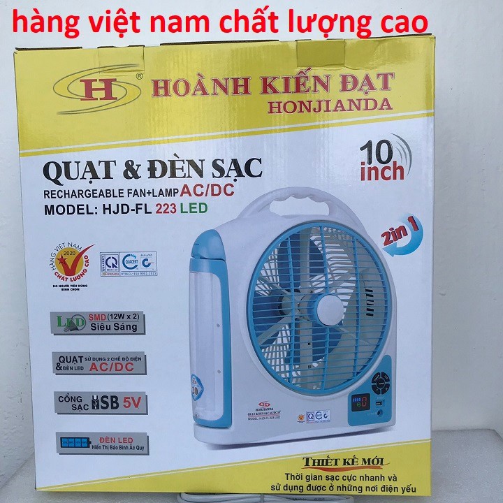 QUẠT SẠC 10 INCH ;MODEL HJD FL 213 LED+ nguồn điện auto volt ; AC 100V- 240V/50Hz
