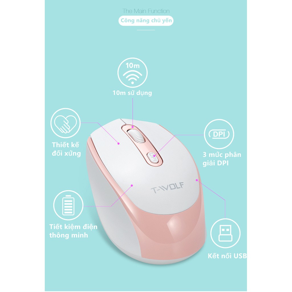 Máy tính & Laptop > Chuột & Bàn Phím > Chuột Máy Tính || T-Wolf Chuột không dây Bluetooth, DPI 1600, chế độ kép wireless usb 2.4Ghz, bluetoothCòn hàng