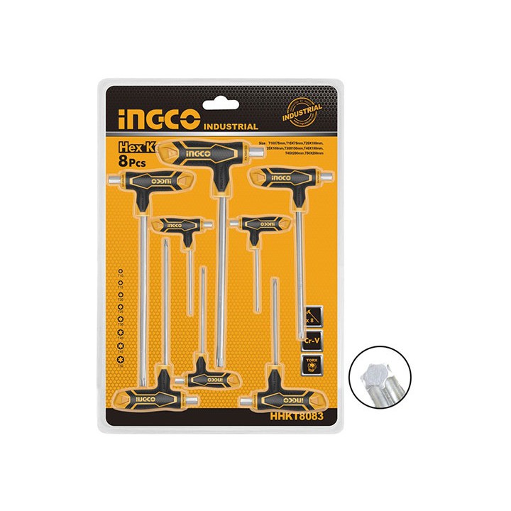 Nhà cửa & Đời sống > Dụng cụ & Thiết bị tiện ích > Dụng cụ > Hộp dụng cụ cầm tay || T10-T50 Bộ 8 chìa lục giác tay cầm chữ T đầu hoa thị INGCO HHKT8083Còn hàng