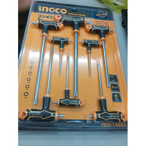 Nhà cửa & Đời sống > Dụng cụ & Thiết bị tiện ích > Dụng cụ > Hộp dụng cụ cầm tay || T10-T50 Bộ 8 chìa lục giác tay cầm chữ T đầu hoa thị INGCO HHKT8083Còn hàng