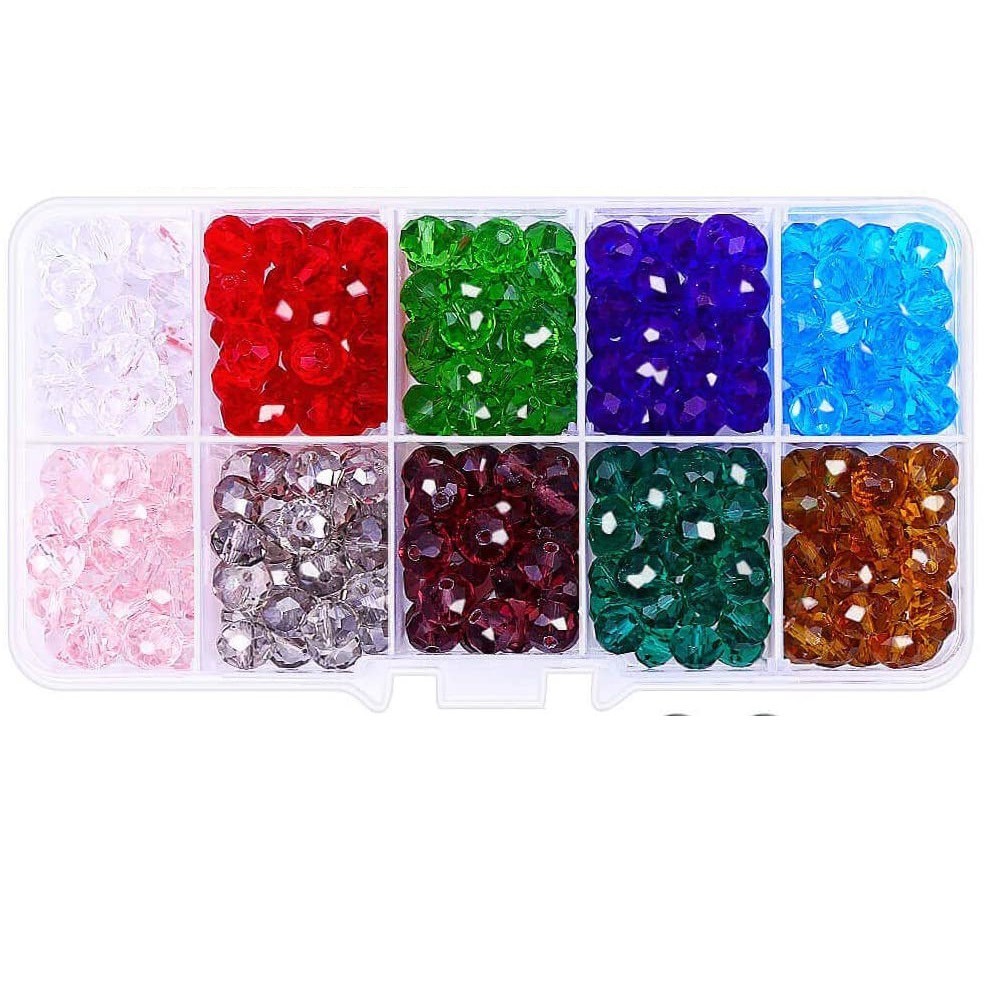 - 02 hộp: Hộp chứa nguyên liệu hạt pha lê 10 màu, hộp chứa móc khóa kẹp