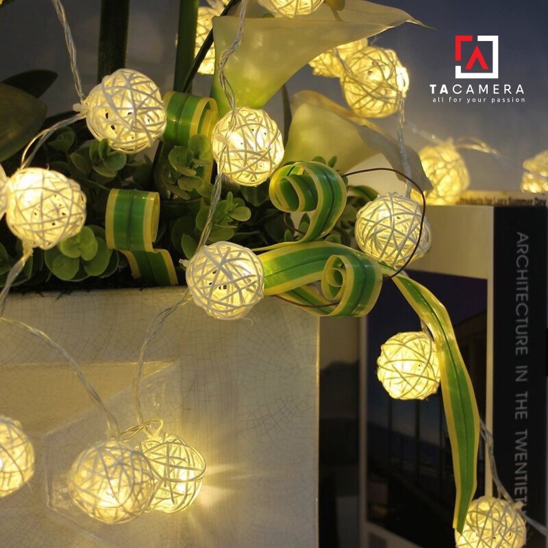 TA-Camera: Dây Đèn LED Quả Cầu Mây - Size 2m - 20 quả - Nguồn Pin AA