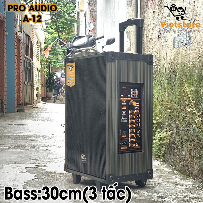 Thiết Bị Âm Thanh > Dàn âm thanh > Loa || (Tặng kèm 2 Mic không dây) Loa kéo Karaoke Pro Audio A12 Siêu bass 3 tấc (30cm) bluetooth 4.2 âm thanh 3D HifiCòn hàng