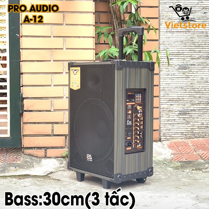 (Tặng kèm 2 Mic không dây) Loa kéo Karaoke Pro Audio A12 Siêu bass 3 tấc (30cm) bluetooth 4.2 âm thanh 3D Hifi