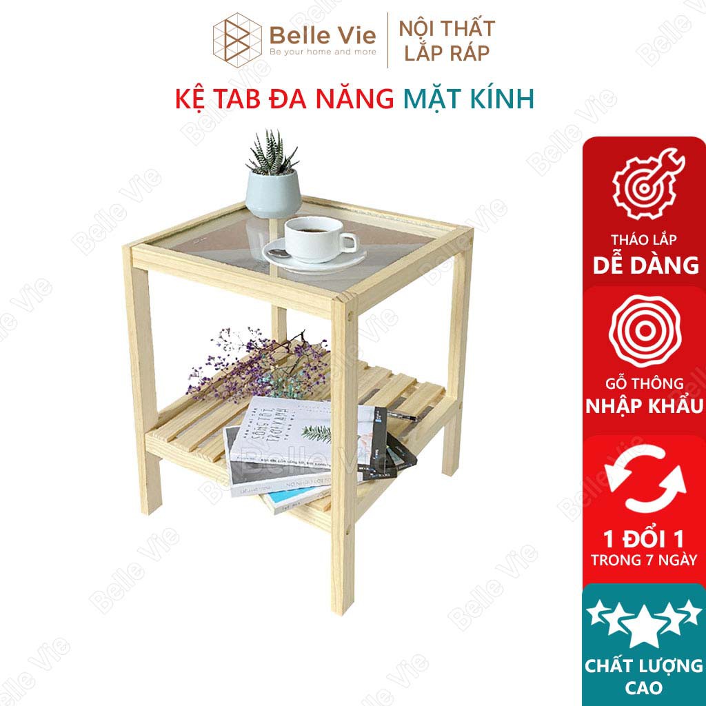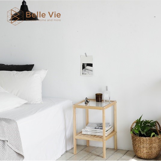 Kệ Đầu Giường Khung Gỗ Mặt Kính 2 Tầng BelleVie Kệ Gỗ Tab Đầu Giường Mặt Kính Glass ShelfTHÔNG SỐ: