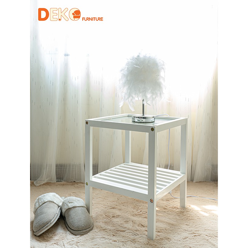 Nhà cửa & Đời sống > Nội thất > Kệ & Giá || Tab Vuông Kệ Đầu Giường Mặt Kính DEKO Màu TrắngCòn hàng