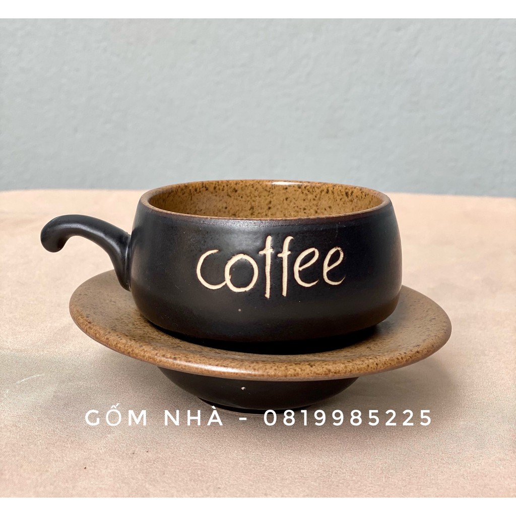 Bộ tách cafe/coffee/ cà phê kèm đia lõm men gốm Bát Tràng
