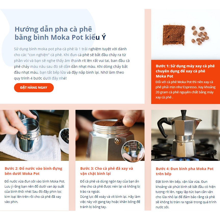 - Cho cà phê xay vào phin nhưng không nén và lấy bột cà phê dư từ mép của bình nhỏ.