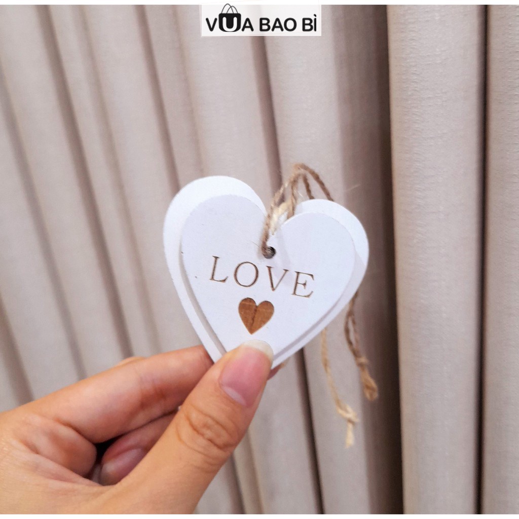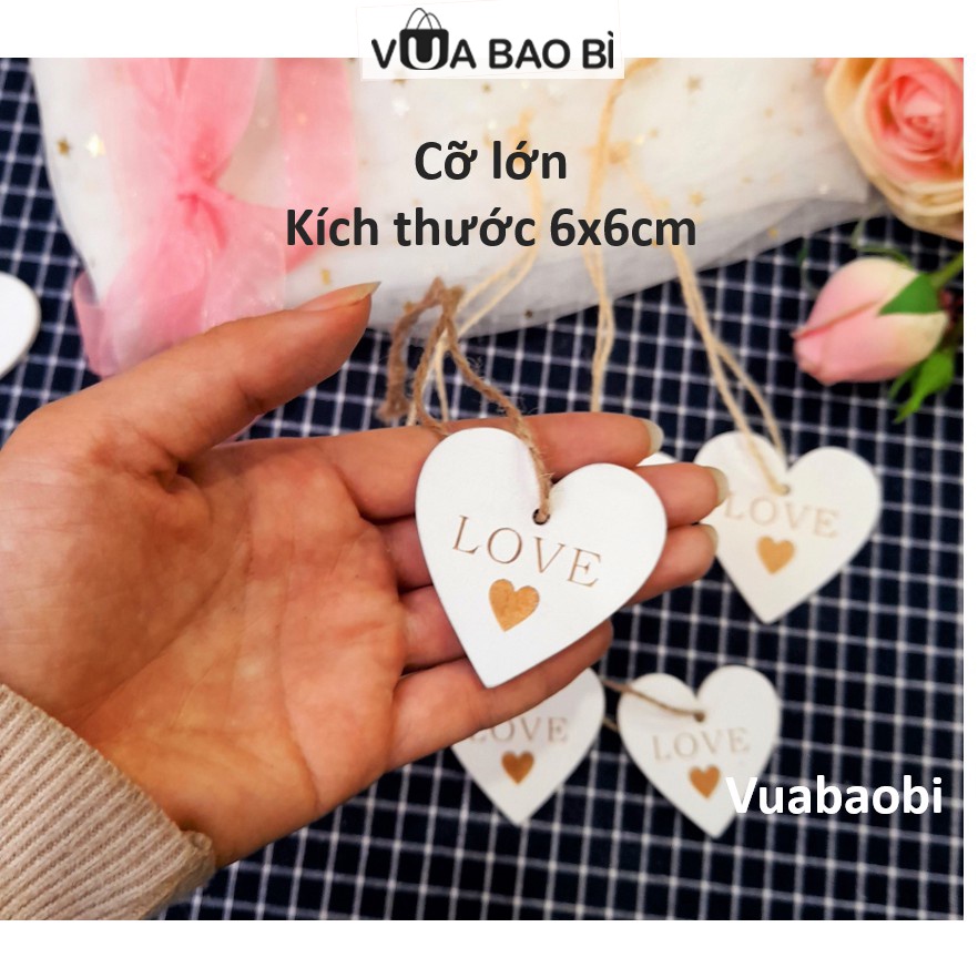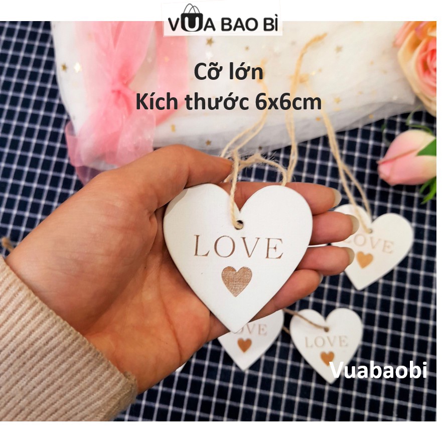 Tag gỗ trái tim khắc chữ love có dây treo trang trí, khuy gỗ, miếng gỗ trái tim DIY
