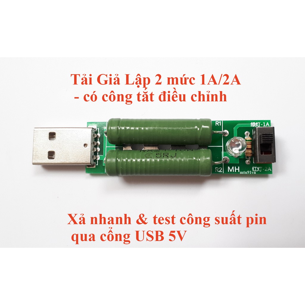 Tải Giả Lập 1A/2A Tải Điện Trở Sạc Xả Điện Áp Cell Pin 18650 , Pin Dự PhòngTải giả lập 2 mức 1A và 2A dùng 2 điện trở 5Ω/2.5Ω