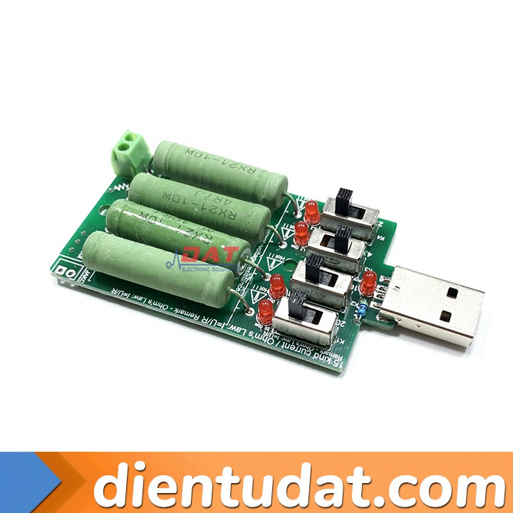 Tải Giả USB 4 Trở Tải 2R2 4R7 10R 20R được tích hợp các nút gạt điều chỉnh điện trở 2,2/4,7/10/20OhmMạch có đèn LED để dễ dàng quan sát các điện trở đã được bật hay chưa