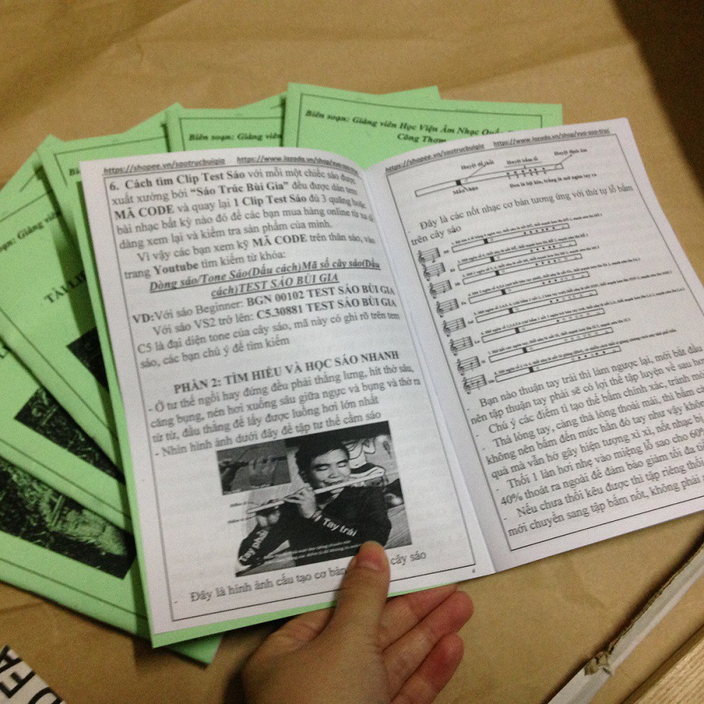 Tài liệu hướng dẫn tự học SÁO TRÚC - SÁO NGANG cơ bản (20 cảm âm thông dụng)Là một sản phẩm tặng kèm khi mua bất kỳ một sản phẩm sáo, tiêu, dizi, sáo mèo, sáo bầu... của SÁO TRÚC BÙI GIA