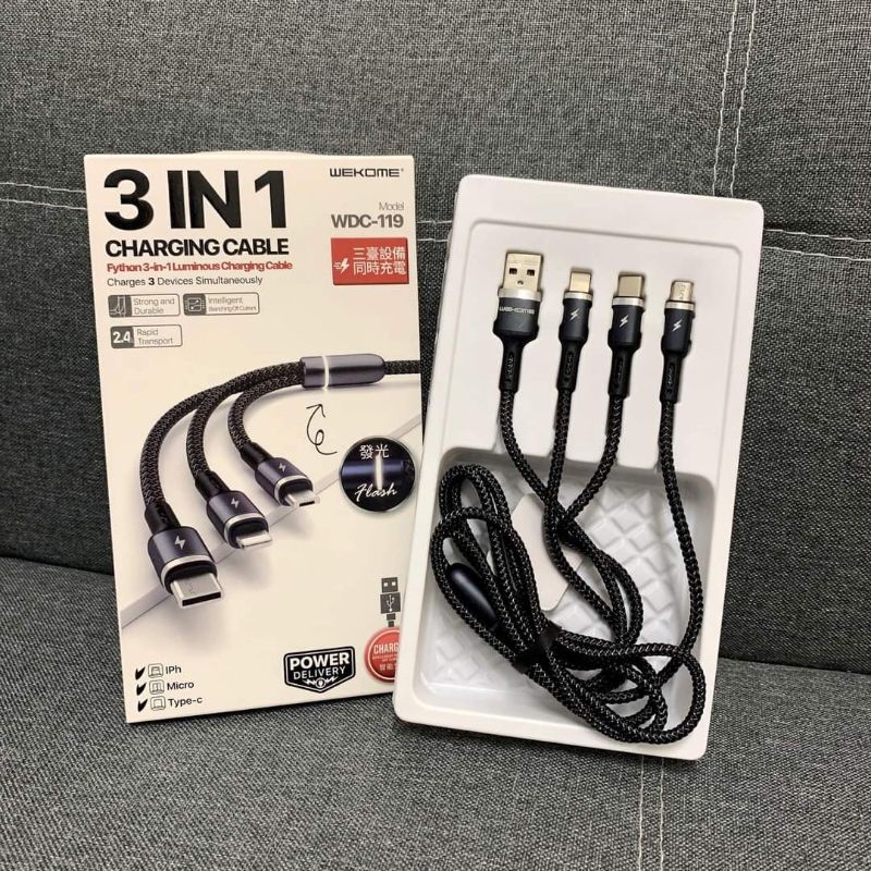 -> Tích hợp sẵn 3 đầu sạc : 𝐈𝐏 , 𝐌𝐢𝐜𝐫𝐨 , 𝐓𝐲𝐩𝐞𝐂. Sạc được cùng lúc 3 máy.