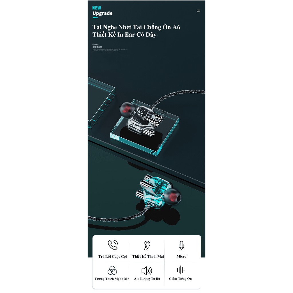 Tai nghe A6 HiFi 2 Loa lõi kép siêu bass MẪU MỚI - VL