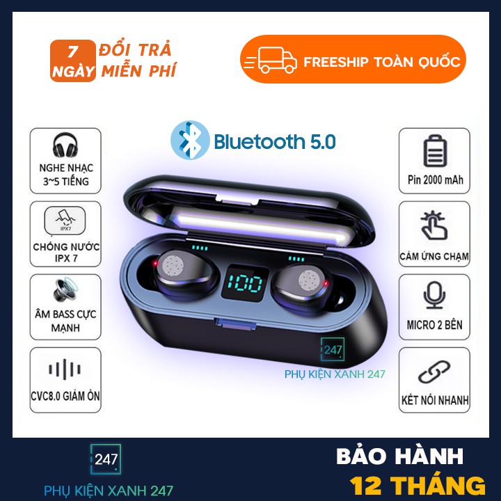 tai nghe bluetooth 5.0 Amoi F9 ⚡️Đ𝐈̉𝐍𝐇 𝐍𝐇𝐀̂́𝐓⚡️ Âm Thanh SIÊU ÊM, chống nước, Pin 2000Mah Kiêm Sạc dự phòng