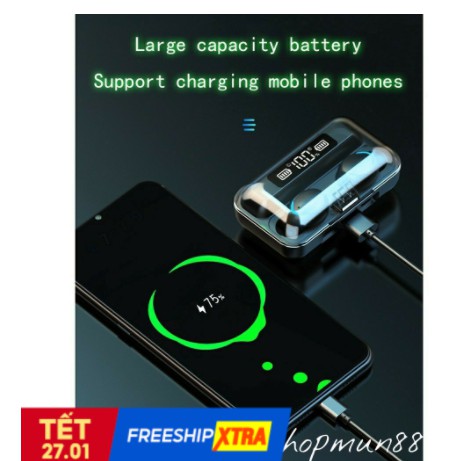 Điện Thoại & Phụ Kiện > Phụ kiện > Khác || Tai nghe Bluetooth 5.1 T.W.S F9 cảm ứng không dây chống nước IPX7 Pin 280h kèm sạc dự phòngCòn hàng