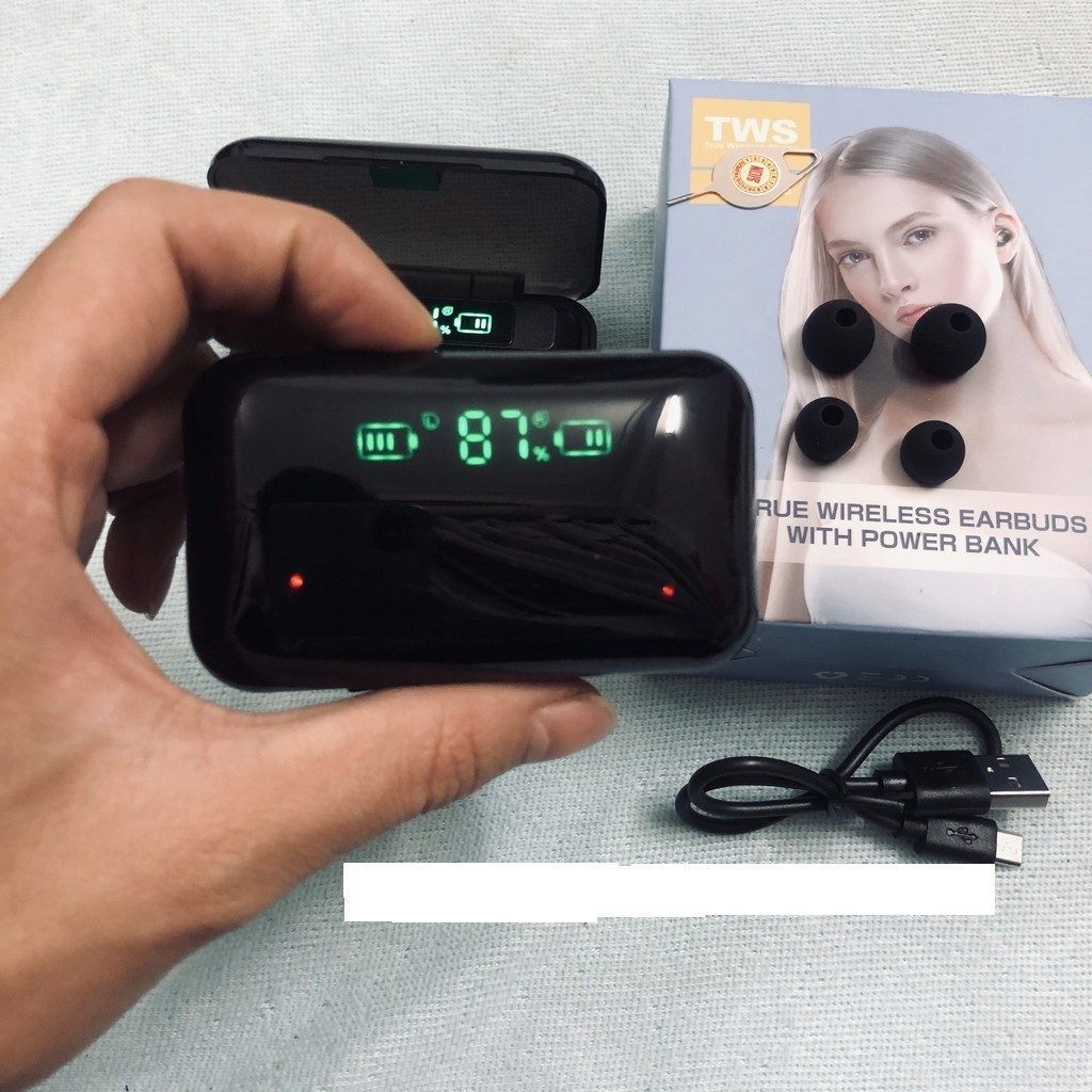 Tai nghe Bluetooth AMOI F9 - TrueWireless - Bản Quốc Tế 2020 - Kim Sạc Dự Phòng 2000mahTai nghe Bluetooth TWS F9 không dây nút cảm ứng kháng nước thể theo stereo Đánh Giá Tai Nghe TWS F9 Điểm Mạnh: • Tai nghe thiết kế tinh xảo, tỉ mỉ, đem lại cảm giác thời thượng. Các đường bo ôm sát tai tránh rơi rớt khi vận động mạnh. • Công Nghệ Kết Nối Bluetooth v5.0 cho tốc độ nhanh ổn định & tiết kiệm pin. • Âm thanh trong, ấm & hay so với các sản phẩm cùng giá khác, dảy bass không quá dày & nặng tai. • Có nhiều tính năng như sạc ngược các thiết bị điện thoại khi bạn cần dùng gấp, kháng nước kháng bụi, hộp đựng có thể dung làm giá đỡ điện thoại • Dock sạc có thể sạc ngược cho điện thoại, nút cảm ứng trên tai nghe Điểm Yếu: • Hộp đựng tai nghe to, do dung lượng pin nhiều. • Tính năng sạc ngược cho các thiết bị điện thoại còn chậm lâu đầy pin. Mô tả: Mẫu: F9 Loại: Tai nghe Loại tai nghe: Tai nghe nhét trong tai Giao thức Bluetooth: HFP/HSP/A2DP/AVRCP Thời gian sử dụng: khoảng 3-6 giờ Dung lượng pin dock sạc: 2000 mAh Khoảng cách Bluetooth: khoảng 10 mét Không thấm nước Phương thức kết nối: 1 Tai nghe đơn hoặc 2 tai nghe cùng lúc Màu đen Chức năng: Phát/Tạm dừng nhạc, giảm tiếng ồn trả lời cuộc gọi, hiển thị nguồn IOS, nhắc nhở bằng giọng nói Phiên bản Bluetooth: v5.0 Các thiết bị tương thích: các thiết bị Bluetooth như cho Xiaomi, Samsung, Apple, Huawei, OPPO, vivo, Lenovo, tablet, v. v. Mẹo: không chạm vào nước nóng Gói: Tai nghe bluetooth 1 * F9 Cáp dữ liệu 1 * Hướng dẫn sử dụng 1 *
