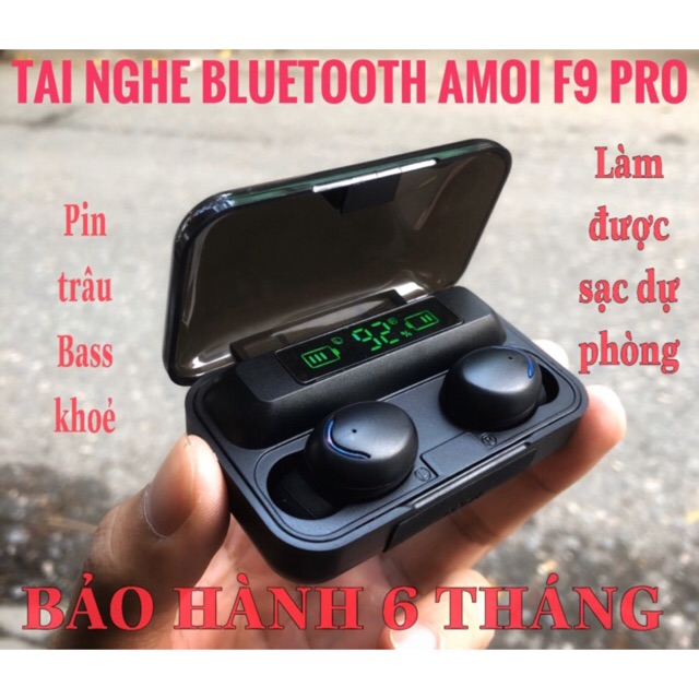 Tai Nghe Bluetooth Amoi F9 PRO Cảm Ứng - Tiếng Anh - Pin Siêu Trâu - Chống Nước - Kiêm Sạc Dự Phòng