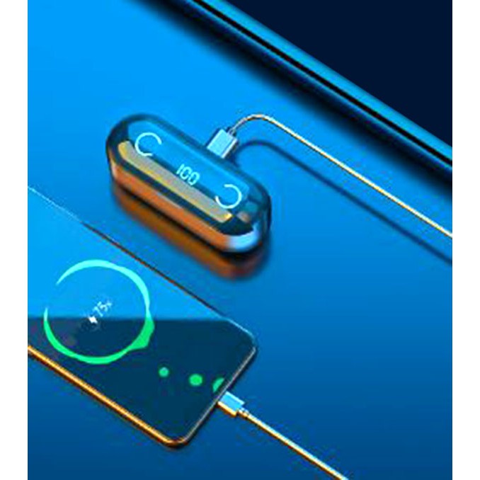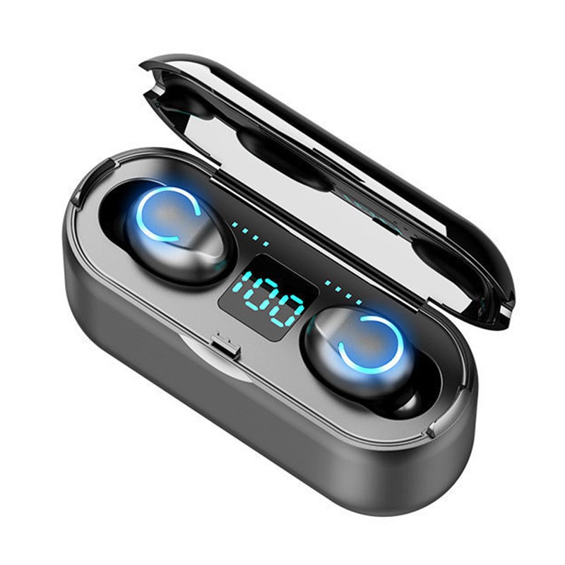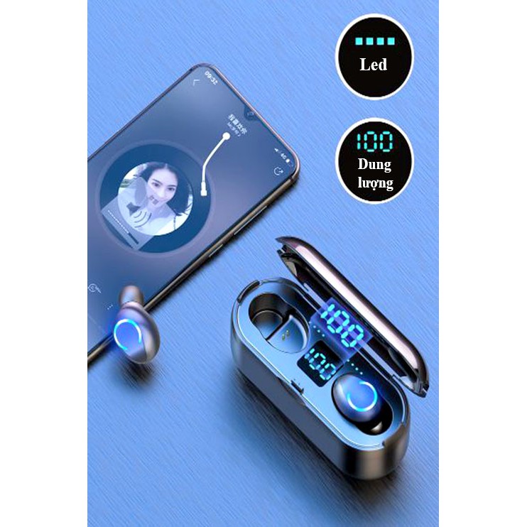 - Tai nghe Bluetooth kiêm pin sạc dự phòng F9 - 8thiết kếmàn hình Led hiển thị dung lượng của dock sạc và từng bên tai - Nghe ngay cả khi đậy nắm kén sạc. Giúp có thể dễ dàng biết được trạng thái pin, sạc khi sử dụng.