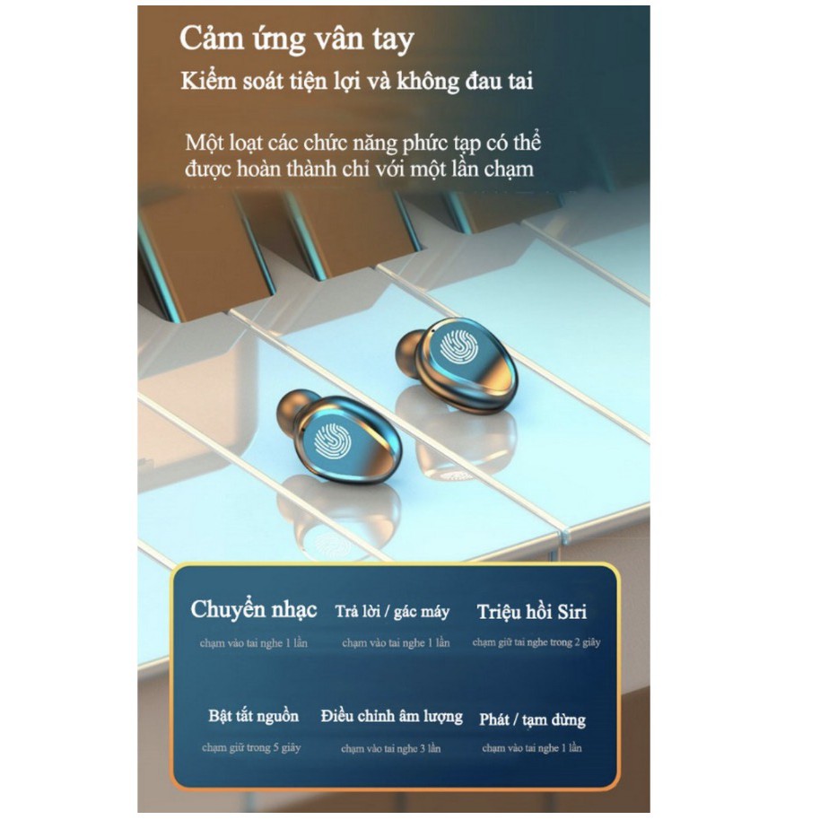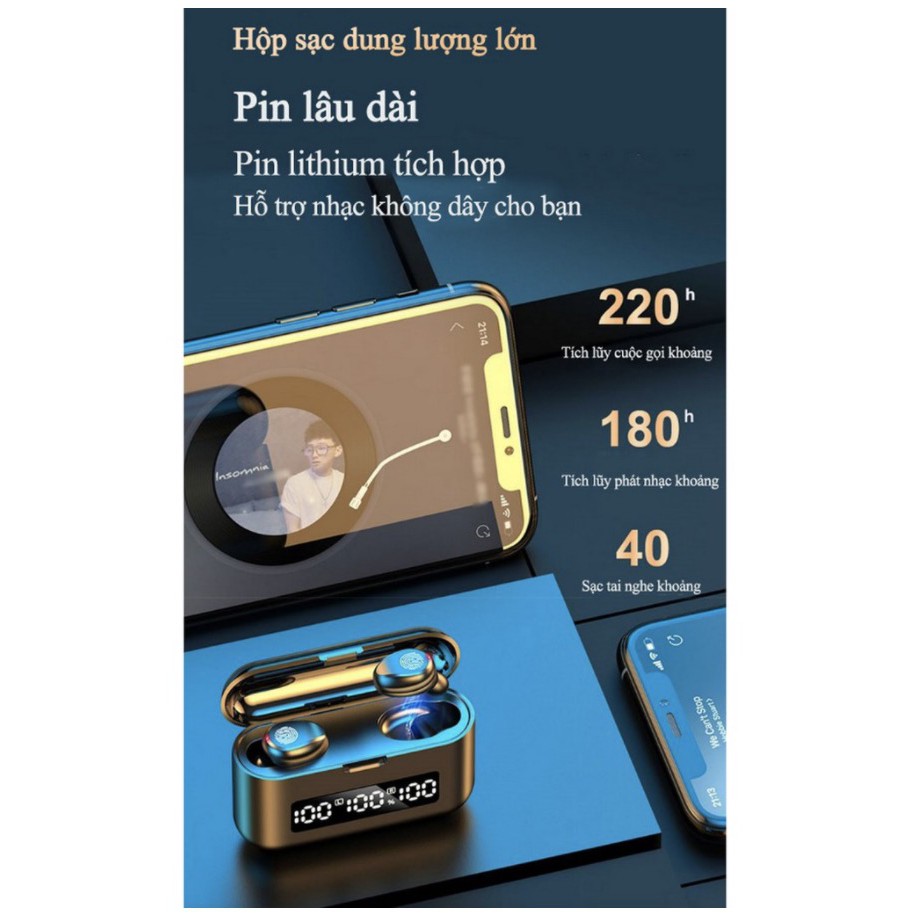 Tai nghe bluetooth không dây nhét tai hộp đựng tự động nạp sạc pin Graphene 9D giảm ồn, tích hợp sạc dự phòng