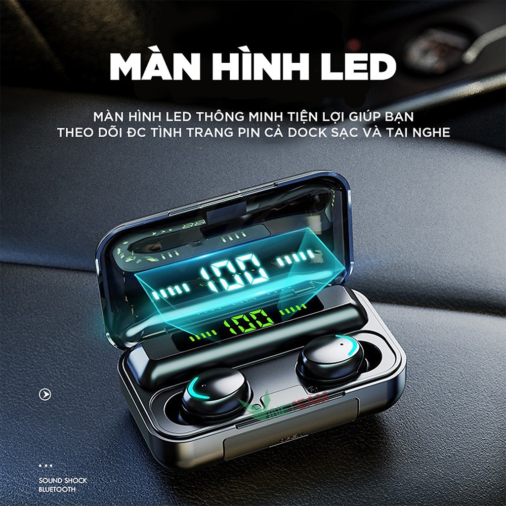 Tai nghe Bluetooth không dây AMOI F9-5 màn hình LED cảm ứng không thấm nước IPX7✔chống ồn✔ kiêm sạc dự phòng -dc4246