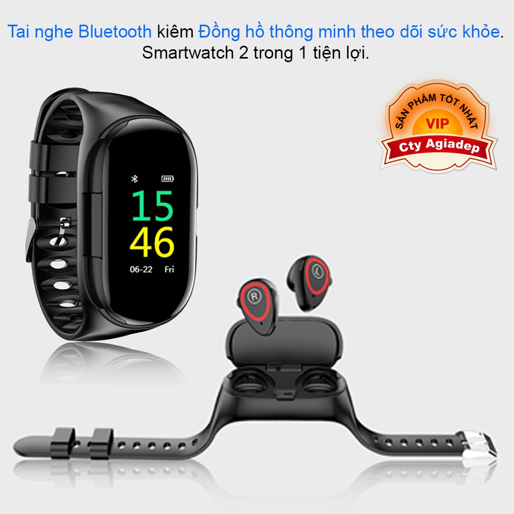 Tai nghe Bluetooth kiêm Đồng hồ thông minh theo dõi sức khỏe Smartwatch 2 trong 1 tiện lợi - Model1