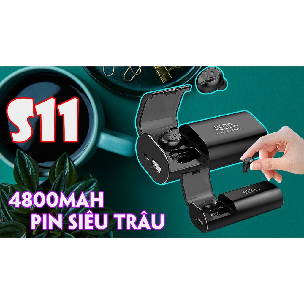 + Dock sạc của S11 tws đi kèm dung lượng 4800mAh sạc được nhiều lần cho 2 tai nghe