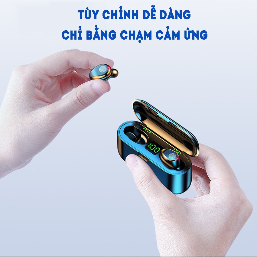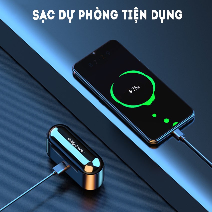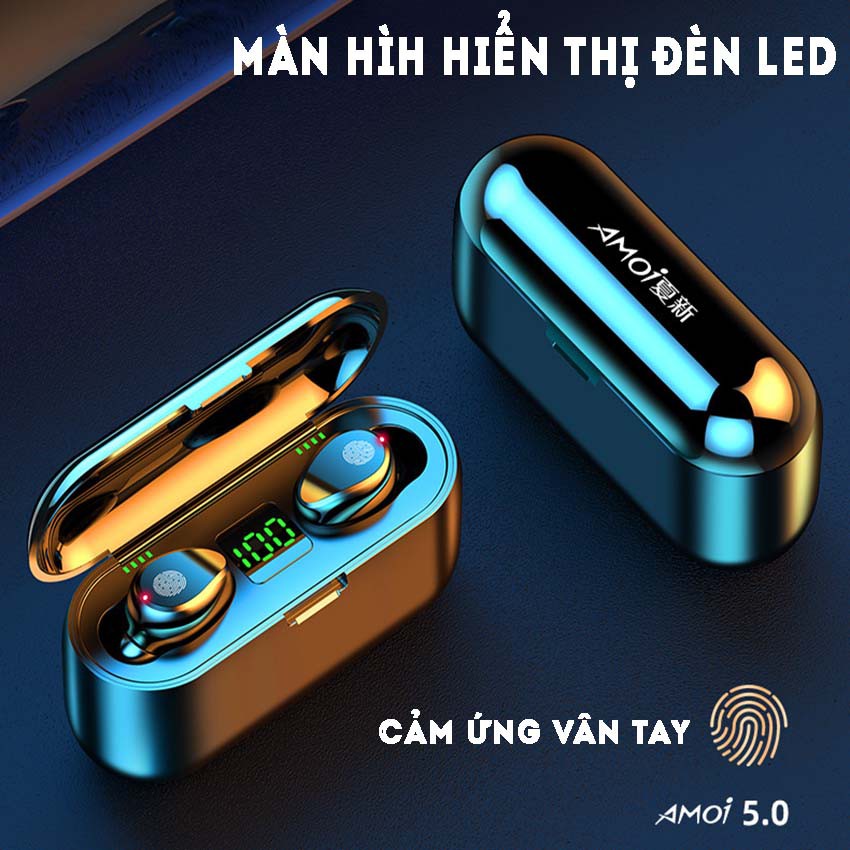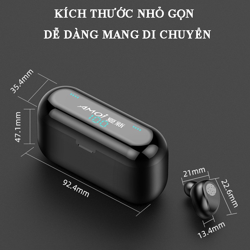 Tai Nghe Bluetooth, Tai Nghe Không Dây AMOI F9 bản QUỐC TẾ 2020 - nút cảm ứng - Pin 280 giờ - Kèm sạc dự phòng