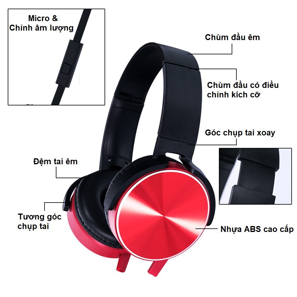 Tai nghe chụp tai sony extra bass xb450ap, có dây cắm trực tiếp với điện thoại, máy tính, âm thanh chất lượng